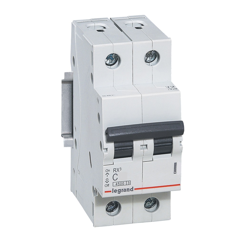 Двухполюсный автоматический выключатель Legrand серии RX3 типа C. Номинальный ток - 20А. Отключающая способность - 4,5кА. Размер - 2 модуля DIN (35 мм). Автоматические выключатели этой серии производятся в Европе. У них увеличенная износостойкость (10000 электрических и 20000 механических операций). Группа Legrand гарантирует качество и соответствие заявленным характеристикам. Товары серии RX3 рекомендуются к применению в реконструируемых и вновь возводимых жилых домах, при ремонте. Допускаются к установке на различных объектах (жилые комплексы, небольшие офисы и торговые помещения).
